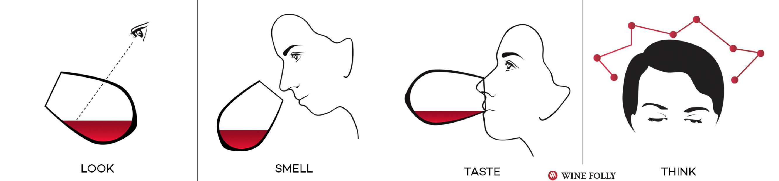 The wine guide takes you through the process of tasting wines.