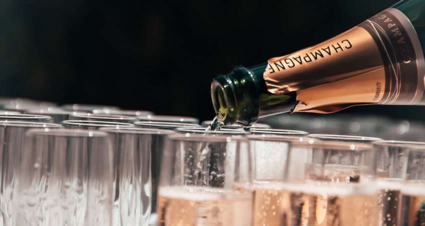 The bottle of Champagne or Sparkling wine should be appropriately chilled, or else the pressure inside the bottle will cause the cork to release very quickly.