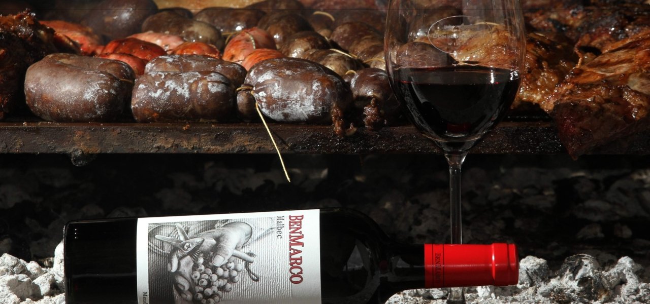 Main course: Our finest cuts of grilled beef and sausages, accompanied by grilled potatoes and vegetables, salad, and our traditional homemade sauces including chimichurri, spicy BBQ and criolla. Served with two of our richest red wines from the Benmarco line: Expresivo and Cabernet Sauvignon.