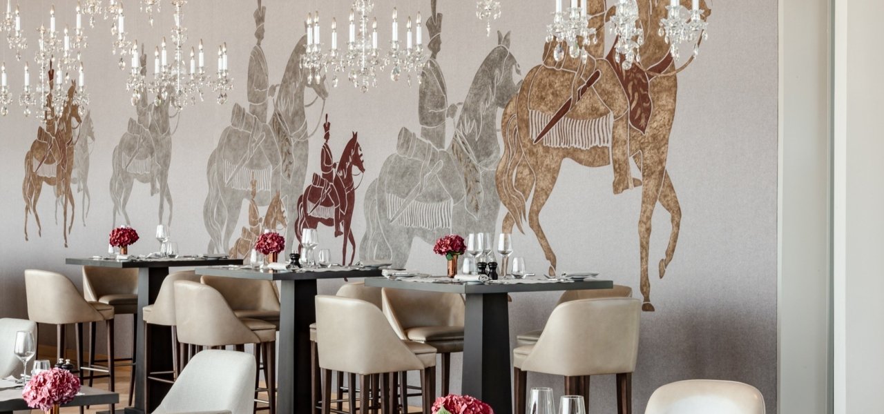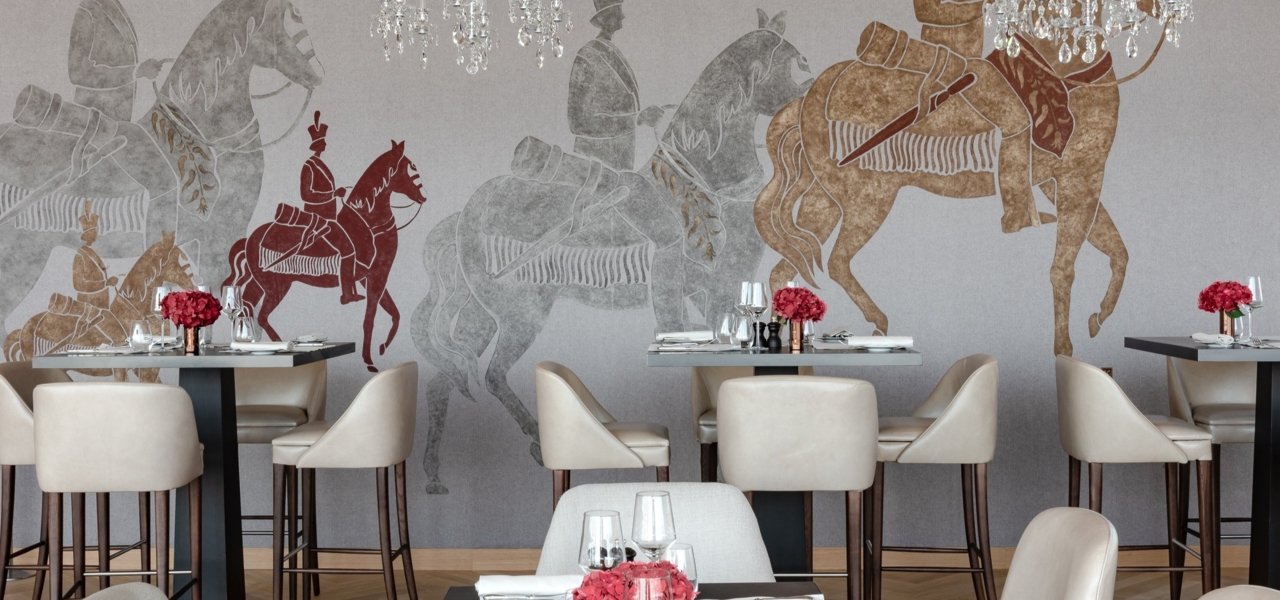 This restaurant is aptly named. Facing the Marne Valley and the setting sun, the bistro stays open most hours, with guests pouring onto the terraces when the weather is right. On its walls you’ll find a little history of this region: a fresco signed by artist Cécile Gauneau pays tribute to the Royal-Champagne Regiment, a platoon of royal soldiers under the Ancien Régime. On the ceiling, more than a thousand crystal pendants reflect the sun’s rays, while black lacquered tables, comfortable armchairs and walls the shade of wine combine sweet with sparkling.
