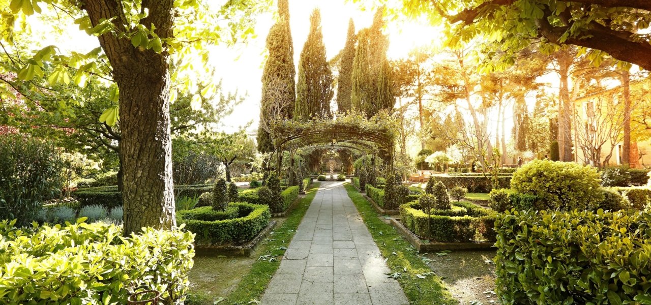 In winter, the restaurant rooms are spacious and bright with a unique view on the extraordinary garden. With warm weather, service takes place on the terrace overlooking the gardens, in the shade of the century-old chestnut and pine trees.