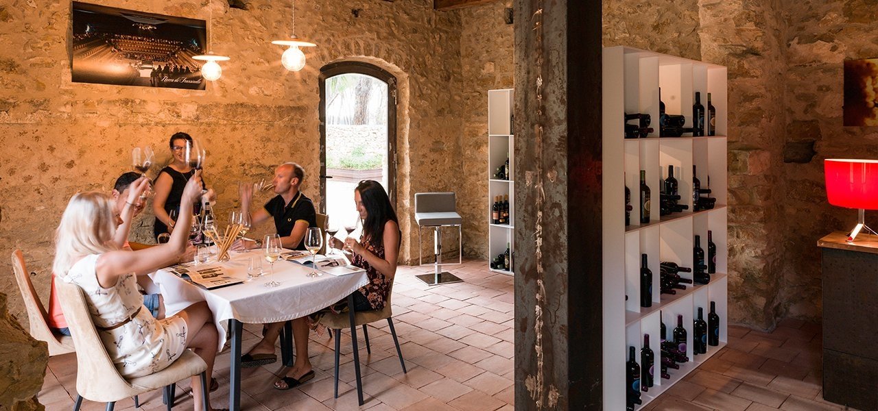 The tasting room offers a view of the barrel room through a spectacular transparent glass floor, It is possible to taste the wide Feudi del Pisciotto’s wine range, starting from the award-winning Grandi Stilisti collection with labels designed by top Italian fashion designers, such as Versace, Missoni, Blumarine or Alberta Ferretti, ending with the new sparkling rosé Davolarosa made with Nero d’Avola.