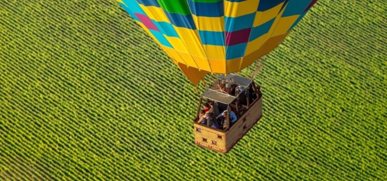Get carried in a spectacular hot air balloon! Your adventure begins at dawn, when the winds are gentle and the light from the morning sun makes the wine country shine like a jewel. Once aloft and floating on a sea of tranquility, you will experience the joy of flight while you view breathtaking vistas... vineyards and wineries for miles. The trip will last an hour, but the memories will last a lifetime. Earthbound once more, you will toast the occasion at a Champagne celebration and breakfast—a grand end to an auspicious occasion.